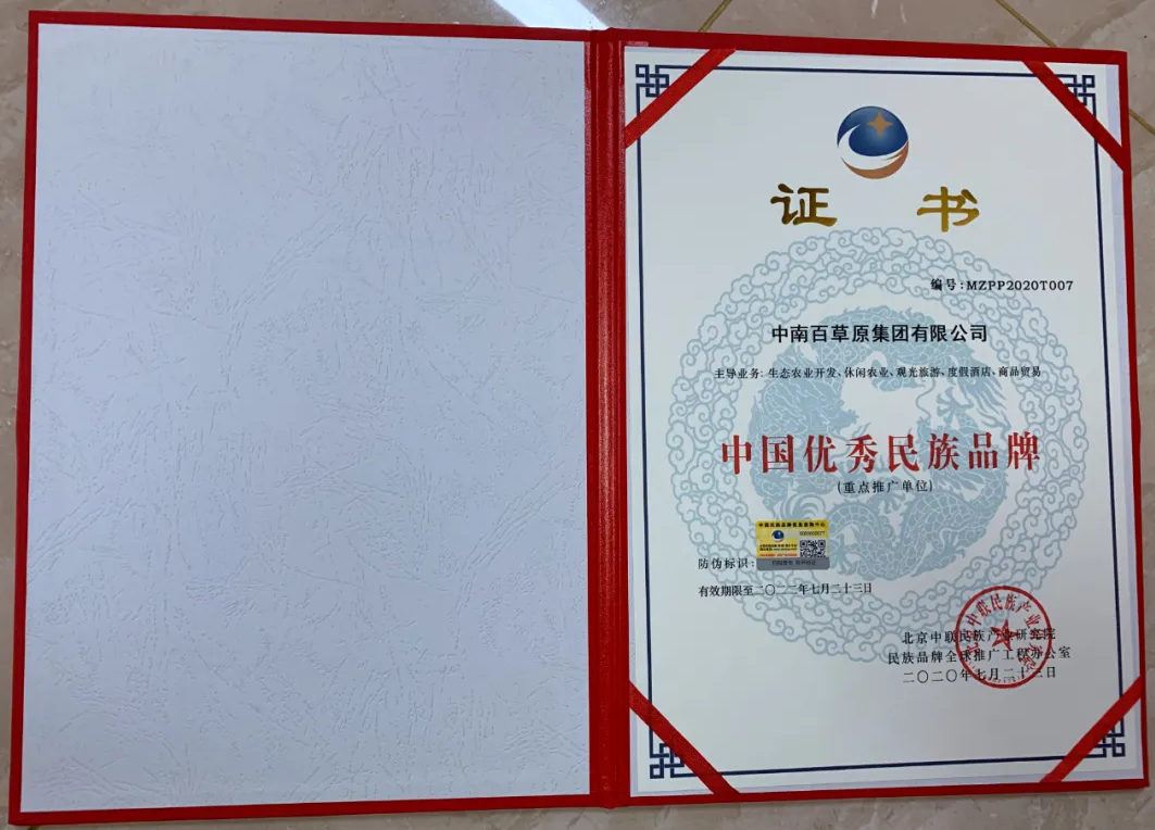 今日,中南百草原再添新譽,被授予了中國優(yōu)秀民族品牌的榮譽,全體中南人將繼續(xù)奮斗,回報這份榮譽認可。
