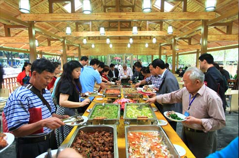 中南百草原度假酒店餐廳、旅游飯店提供各類本地特色美食,同時提供燒烤、大型自助餐、團(tuán)隊(duì)餐等用餐服務(wù)。菜肴主要以農(nóng)家特色為主 ,大都數(shù)素菜均是景區(qū)自產(chǎn),可謂純綠色、天然菜肴,餐廳可同時容納1500余人。