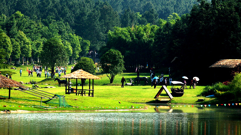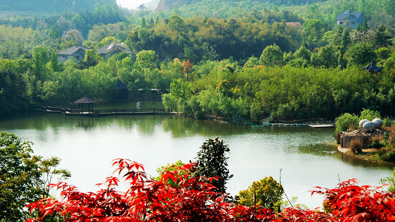 景區(qū)青山環(huán)抱,松杉參天,林深花奇,鹿奔雁翔,擁有各類植物千余種,植被覆蓋達(dá)百分之98%,是天然的綠色大氧吧。內(nèi)有植物1790多種,屬于國家保護(hù)的珍稀植物有30多種,其中有幾棵銀杏、香樟的樹齡已達(dá)200多年。由八大景點(diǎn)十八園組成:碧水晨曦、虎嘯飛泉、虹彩夕照、丹楓流霞、松林晚樵、獅熊追月、淡竹迷宮、百草映雪、白茶園、桂花園、觀賞竹園、紫竹園、紅楓園、梅園、櫻花園、濕地松林、杉木林、香樟園、天然闊葉林、采摘果園、淡竹林。